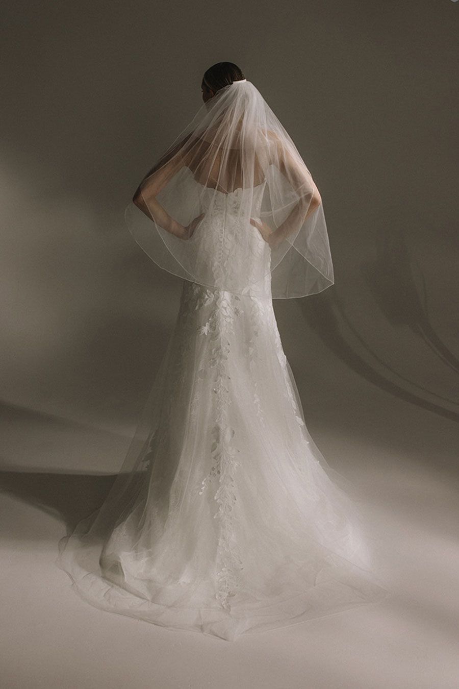 The mermaid silhouette highlights curves, before forming a small romantic train.
